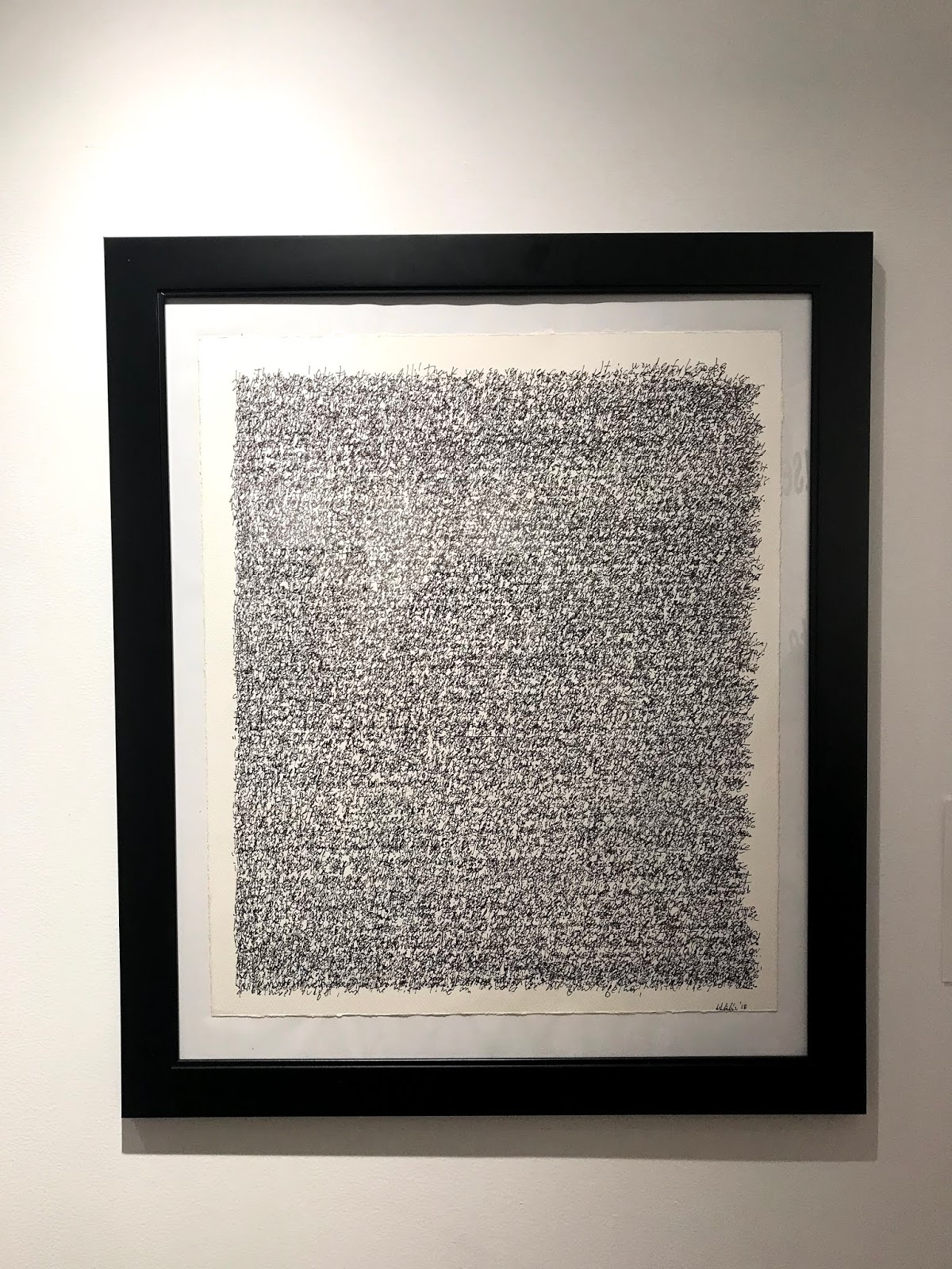 I liked "Announcement" because at first glance it reminded me of overthinking and over-analyzing. It gives off a sense of anxiousness as the page fills with scribbles. As you get closer, words are more defined and after reading the artist's statement, we learn it is a political speech. I personally don't feel the artist when they said " it reminds me of how easy it is to zone out of a sermon or a lecture or a political speech" because I feel more of a hysterical vibe opposed to "zoning out". As for their piece "Hook Up" I did not like it for two reasons. One, it just looks like two magazine pages and two, it glamorizes the idea of loveless sex and cheating; or as the artist put it "woe be upon them who haven't kept up and asked their neighbor's wife to hook up later".